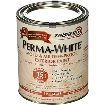 Rust Oleum Zinsser Permawhite Exterior Paint. This high-performance, low-odour coating has a lifetime durability guarantee. Mold & Mildew-Proof White Semi-Gloss Exterior Paint.