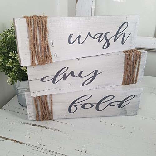 Amazon.com: Wash Dry Fold Laundry Room Decor Set Wood ...