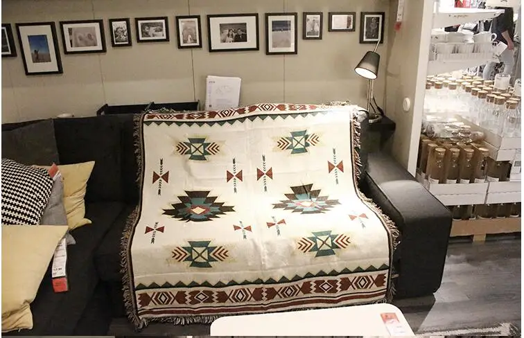 Solid 100% Cotton Sofa Towel Blanket sofa cover Line ...