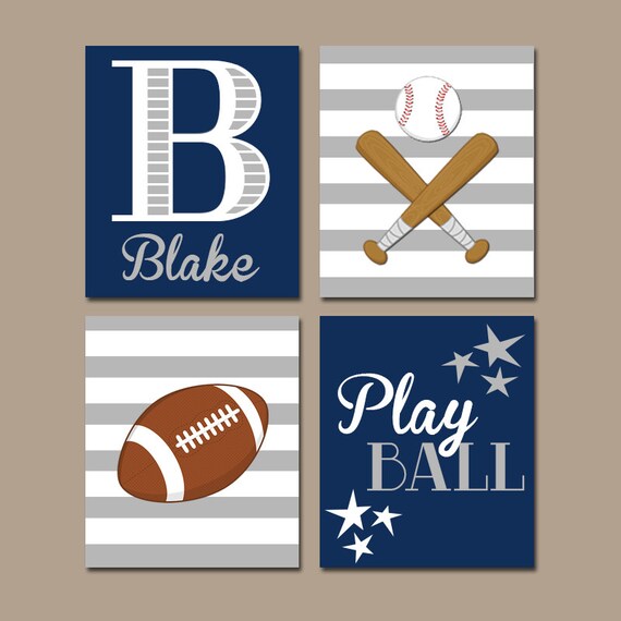 SPORTS Wall Art Navy Sports Theme Decor Sport Balls Quote ...