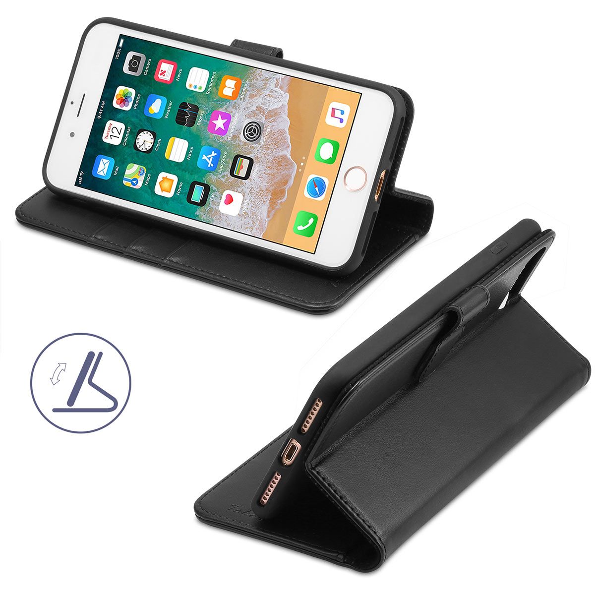 For Apple iPhone 8 Plus Wallet Case Flip PU Leather w ...