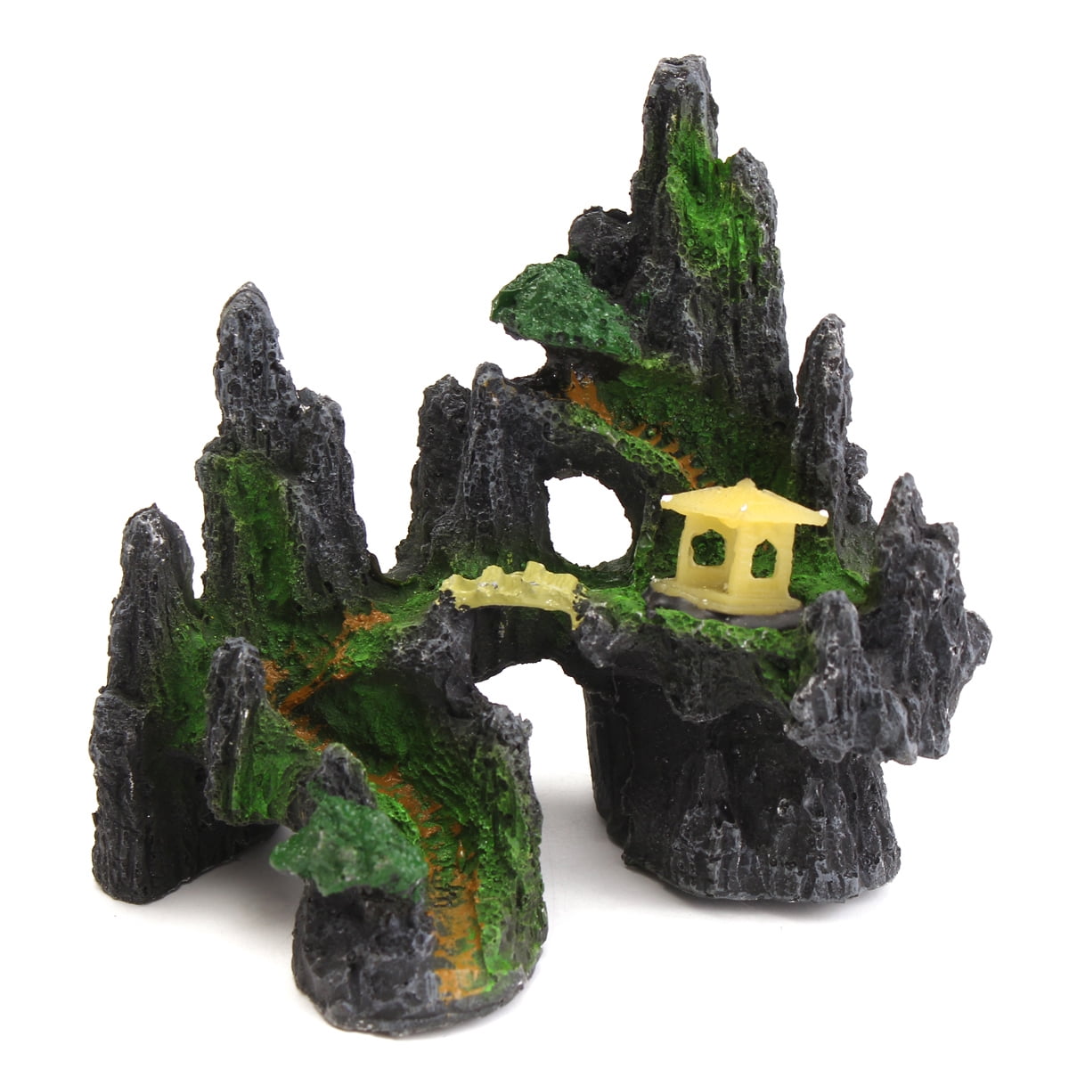 House Mountain Aquarium Tree View Cave Bridge Fish Tank ...
